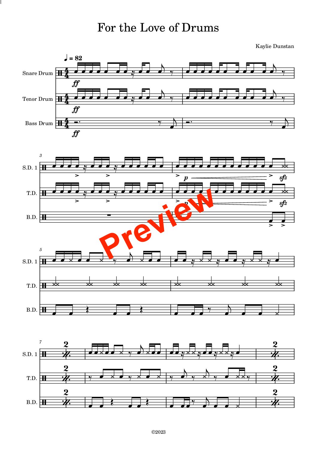 This drum ensemble piece for 3+ players is an introduction to drumline corps as popularised in the United States. The instrumentation is flexible, with the suggested line-up of snare drum, tenor drum and bass drum. Parts may be doubled at will for larger groups and rims and stick clicks may overlap other players for some added flair if desired. The laid back tempo makes it appropriate for entry-level high school ensembles.