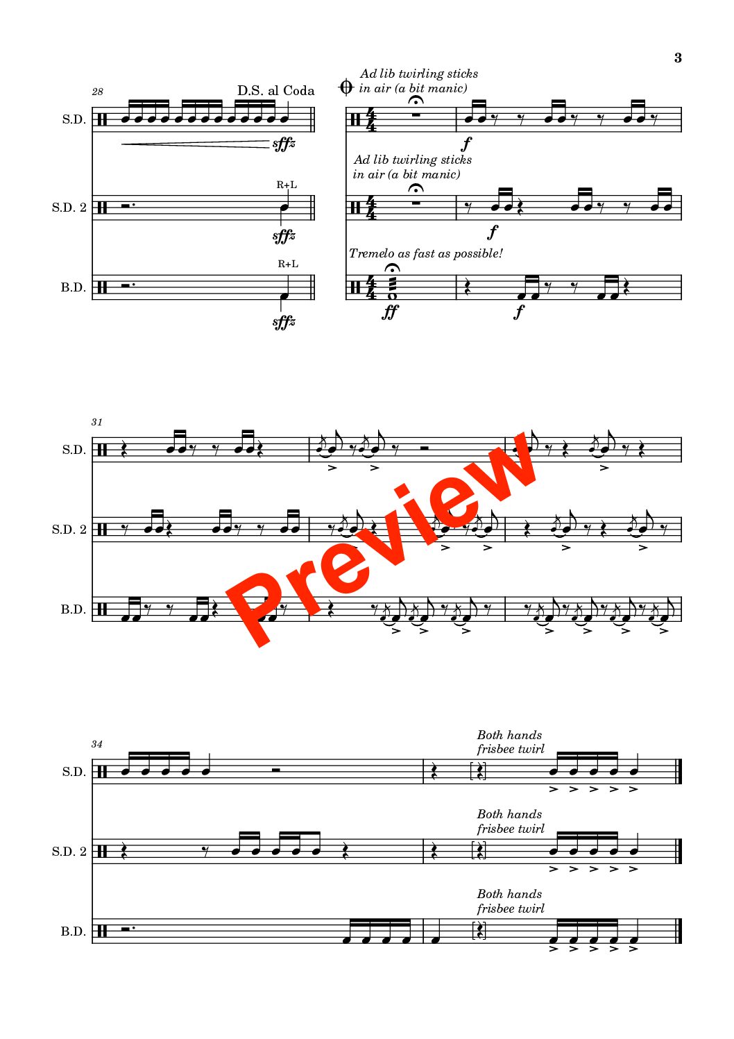 Let’s face it, stick tricks are cool. This is another introduction to the drumline style, using minimal equipment. Scored for percussion trio with 2 snares and a bass drum, parts can be doubled or orchestrated based on what is available. Some funky syncopated patterns provide a collaborative groove, as well as eye-catching stick tricks to dazzle audiences.